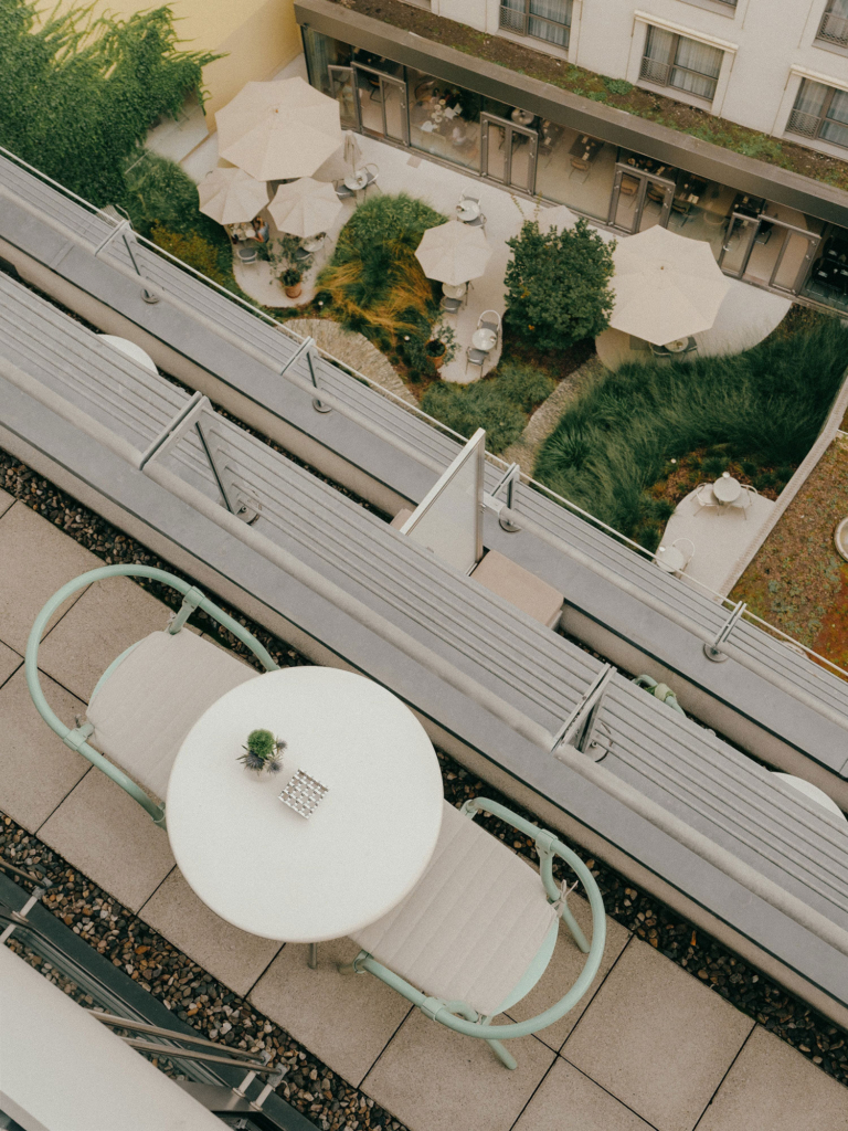 Deluxe balcony rooms feature floor-to-ceiling windows and private terrace seating.